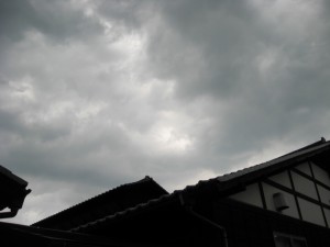 13:40 吉田地域は暑い雲に覆われ、今にも雨が降りそうです ↓