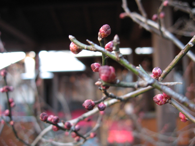 ↓玄関前に植えられている『蝋梅』『紅梅』の つぼみ です。