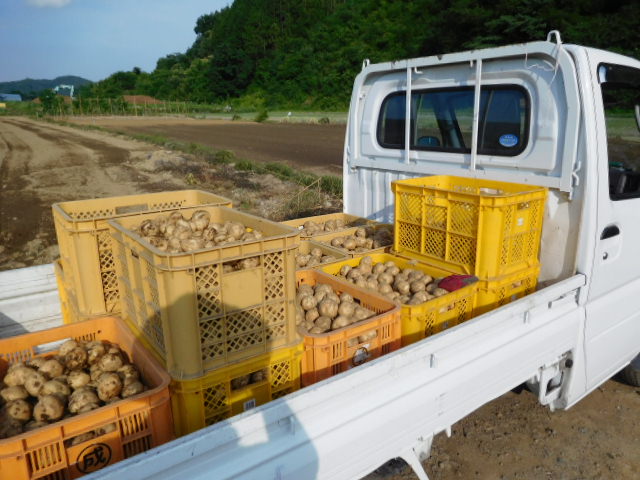 今日収穫した「じゃが芋」は軽トラック3台分>>> 約1,000㌔